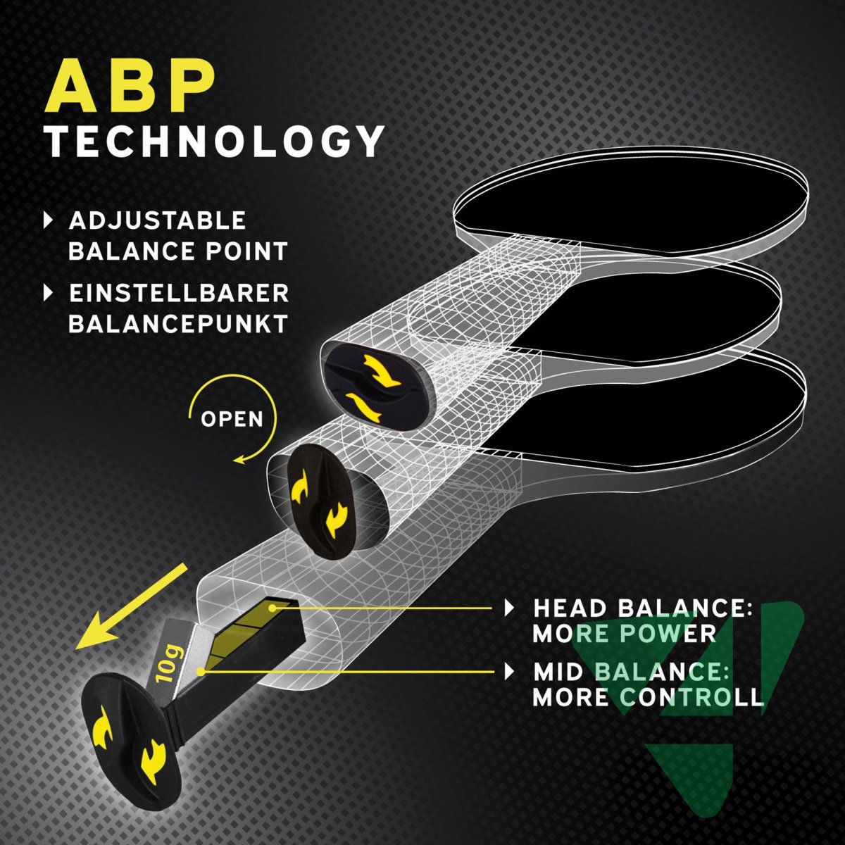 ABP (Adjustable Balance Point) — система настройки баланса, позволяющая сместить центр тяжести ракетки под индивидуальные предпочтения игрока;