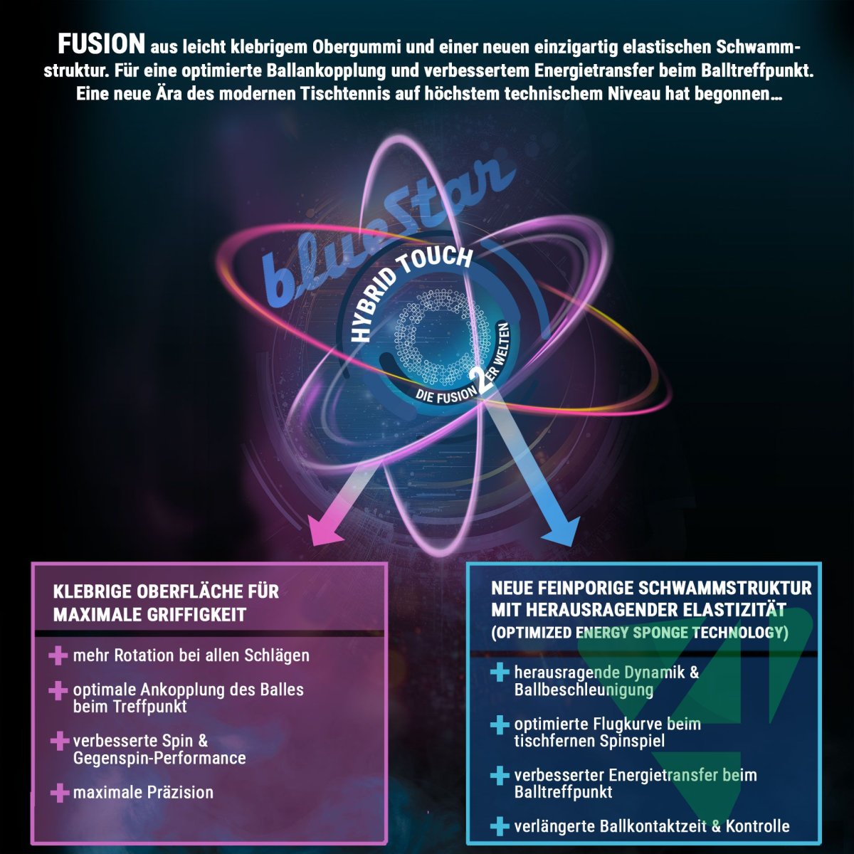 BlueStar A1 позиціюється як гібридна накладка, що поєднує липкість китайських гум та динаміку європейських тензорів.