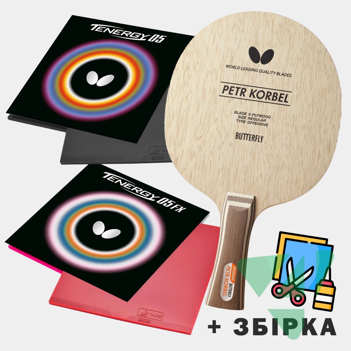 Професійна збірка: основа Butterfly Petr Korbel та накладки Tenergy 05 і 05-FX