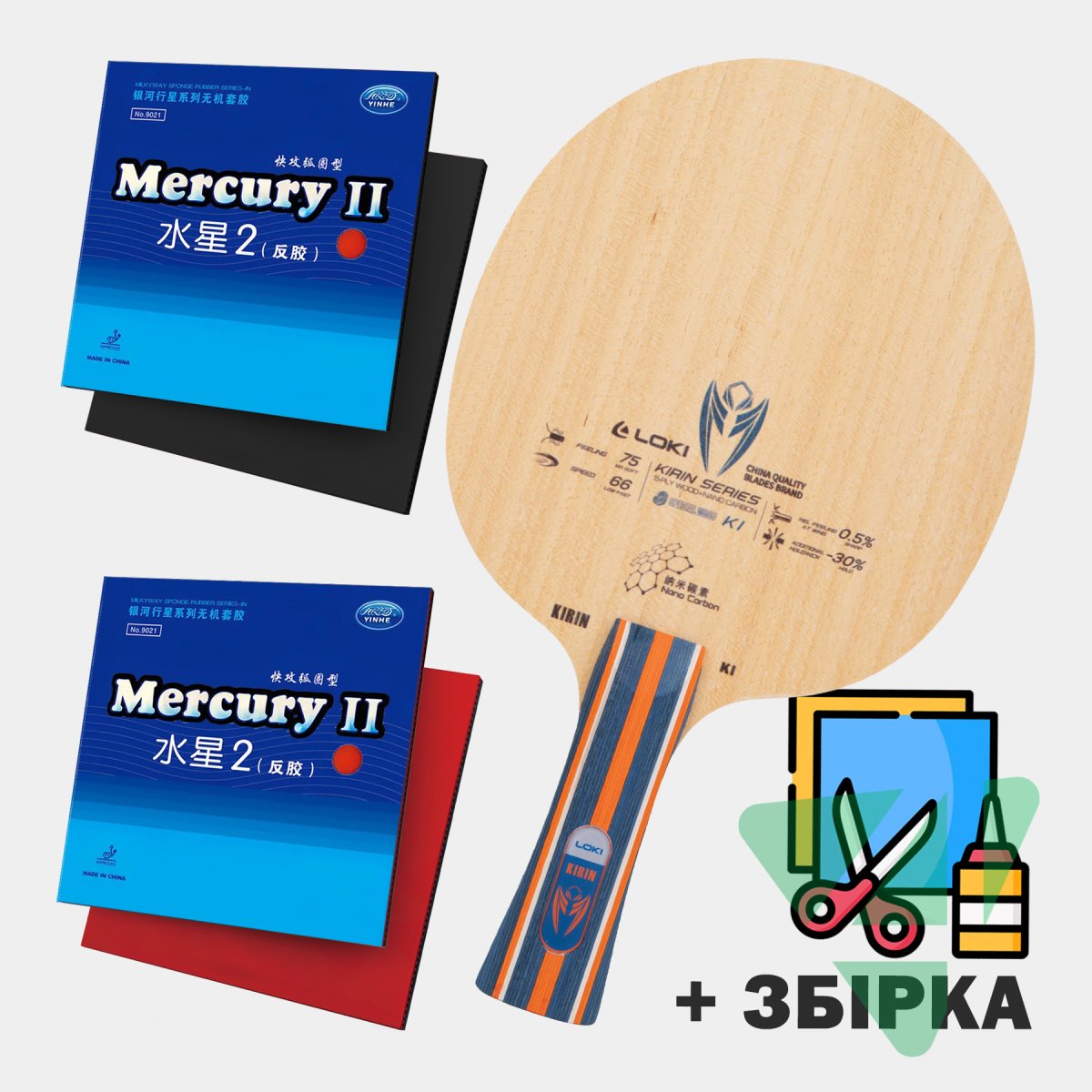 Основа LOKI Kirin K1 + Накладки Yinhe Mercury II (Ракетка зібрана в ручну)