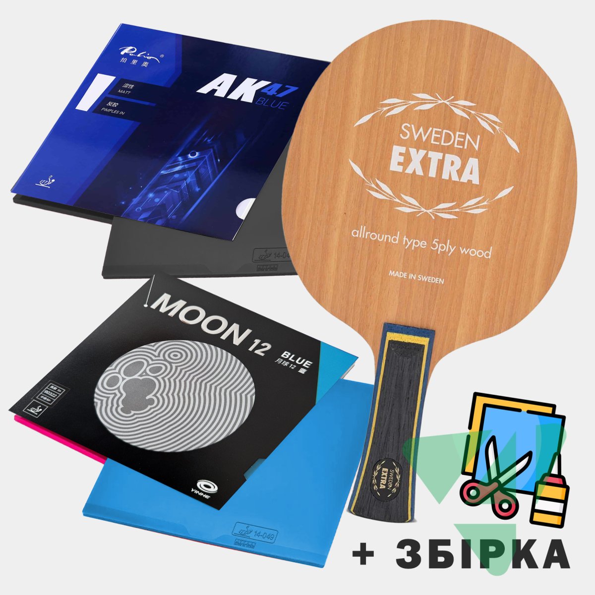 Основа Yasaka Sweden Extra + Накладки Yinhe Moon 12 Блакитна + Palio AK47 Blue Sponge Чорна (Ракетка зібрана в ручну)