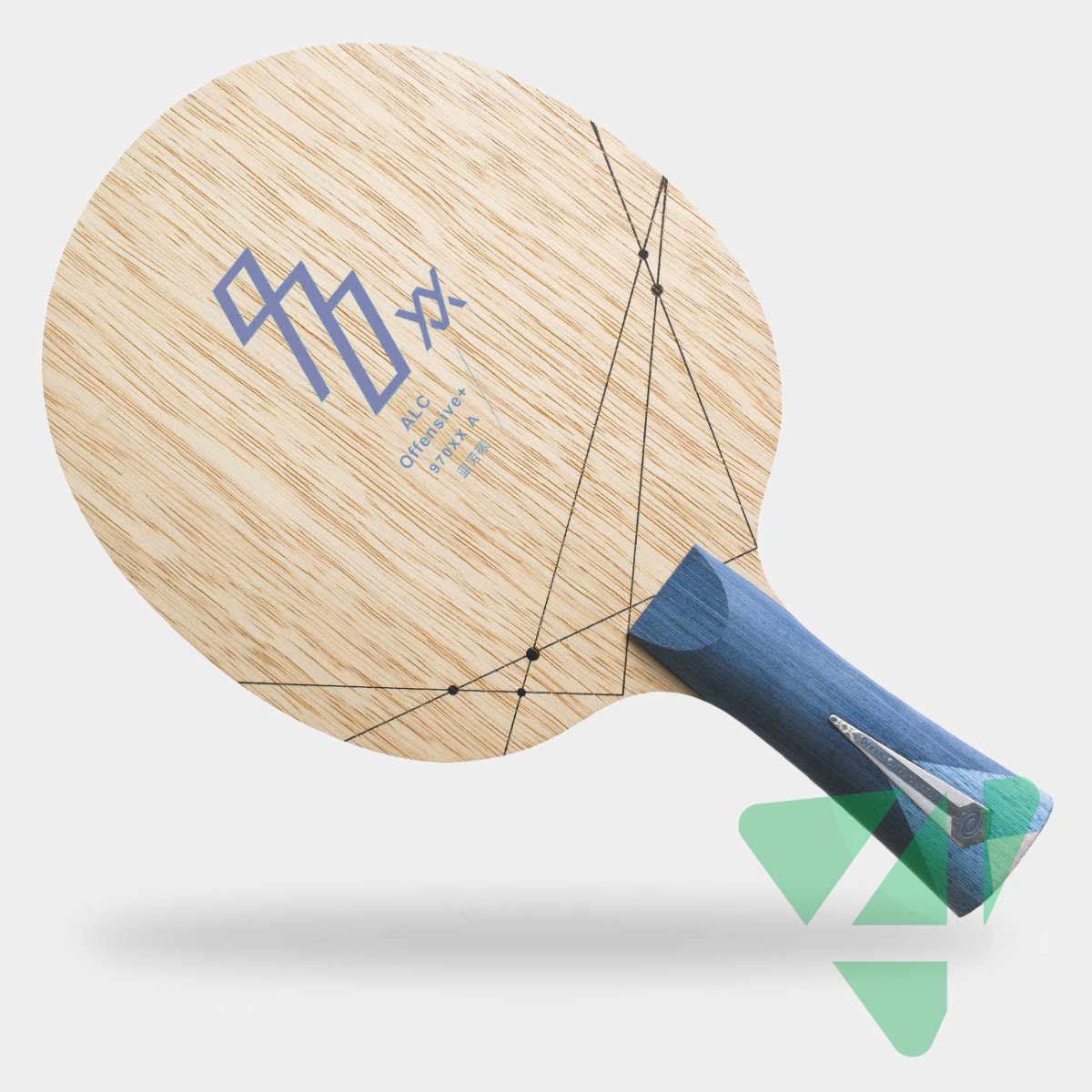 Yinhe 970XX A (ALC) — це атакувальна основа з внутрішнім розташуванням шарів синього ароматичного карбону, створена для сучасних гравців, які будують гру на потужних топспінах з обох флангів. Вона має семишарову конструкцію: п’ять дерев’яних шарів і два внутрішні карбонові, що забезпечують ідеальний баланс між динамікою, контролем і чутливістю. На дотик основа здається трохи жорсткішою, ніж Butterfly Innerforce ALC, але м’якшою і контрольованішою, ніж Timo Boll ALC. Завдяки внутрішньому карбону вона зберігає тривалий контакт з м’ячем і дарує високе відчуття під час гри, особливо на бекхенді.