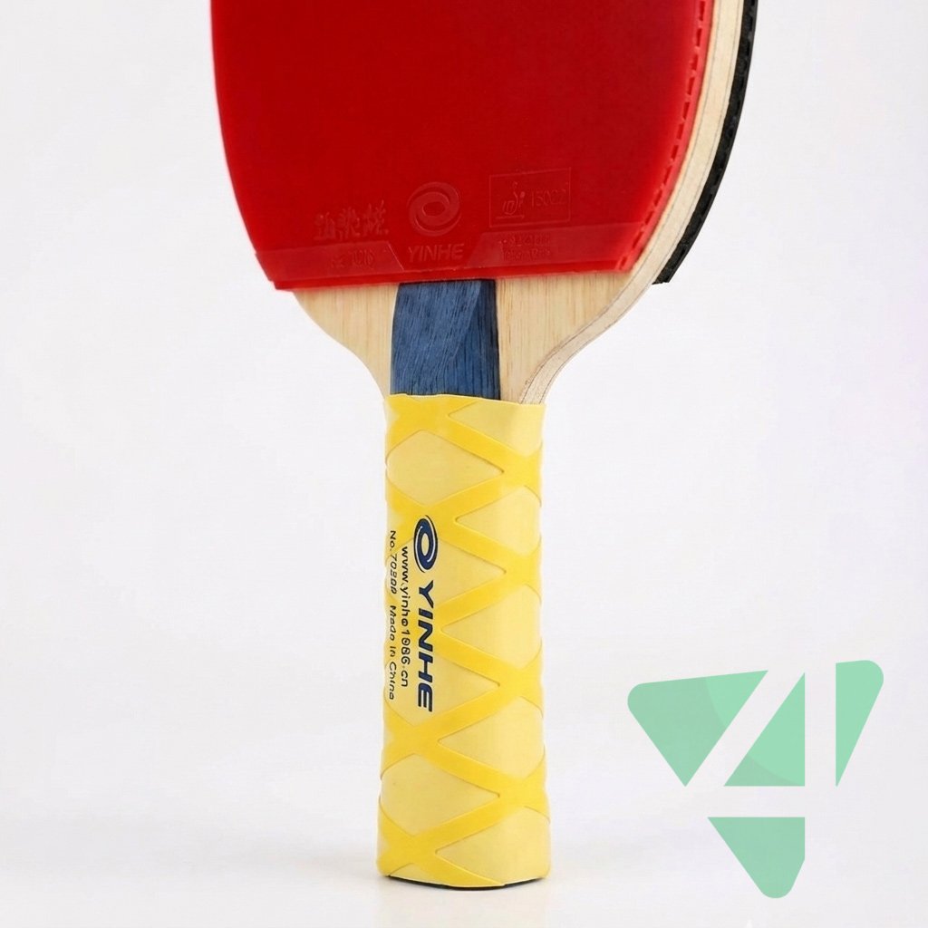 Яскрава жовта термоусадочна накладка Yinhe не лише надійно фіксує ракетку в долоні, але й додає виразної індивідуальності вашому інвентарю. Цей аксесуар легко встановлюється за допомогою теплового впливу, щільно облягаючи руків’я та створюючи приємну на дотик фактуру без використання клею. Використання такої стрічки допомагає уникнути ковзання під час активних розіграшів та ефективно захищає дерев’яну основу від зносу.