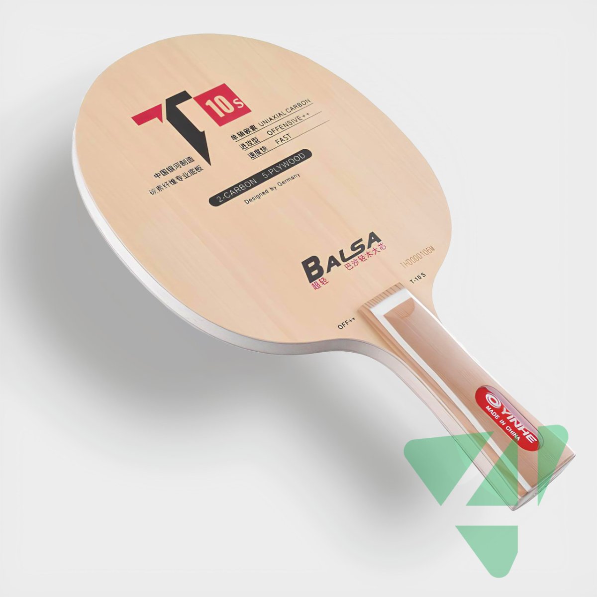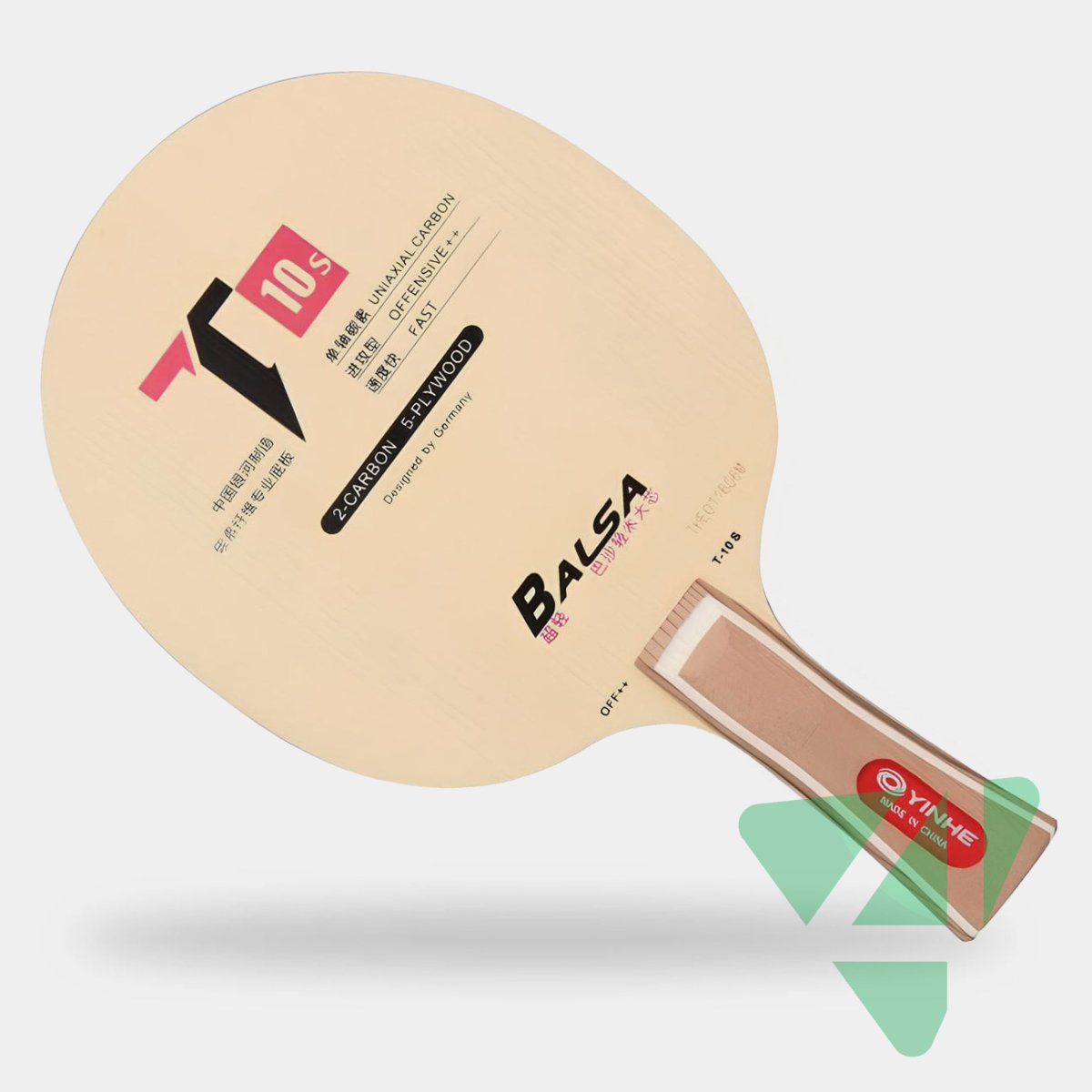Дизайн Yinhe T-10S был разработан в Германии, а само основание производится в Китае на современном оборудовании. Как и другая продукция бренда Yinhe (также известного под названиями Galaxy и Milkyway), эта модель отличается высоким качеством и доступной ценой, благодаря чему пользуется популярностью у игроков по всему миру — от любителей до профессионалов.